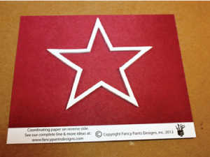 1. Remove a star shape from the foam sheet; leave the top liner paper intact. Position the star onto paper.